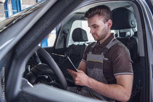 adult, assistant, auto, automobile, automotive, black, brake, business, car, caucasian, center, document, employment, engine, exam, fix, garage, photogenic, inspection, job, labor, maintenance, male, man, manager, mechanic, mechanical, motor, note, 1, people, professional, repair, safety, service, shop, station, technician, technology, tool, uniform, vehicle, wheel, white, work, men at work, workshop, wrench, write
