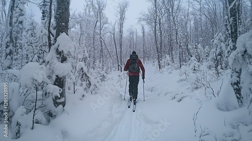 winter, snow, forest, skiing, athlete, sport, nature, tree, trail, winter sports, cold, scenic, landscape, wood, white, glacé, activity, recreation, adventure, travel, exploration, freedom, healthy lifestyle, fitness, calmness, solitude, season, powder snow, winter landscape