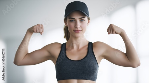 athlete, woman, fitness, strength, gym, sport, exercise, health, active, training, bicep, confidence, modern, studio, light, determination, physical, lifestyle, wellness, motivation, energy, empowerment, portrait, muscular, cap, physical exercise, body, performance, beauty, vitality, young, female, athleticism, pose, challenge, spirit, ambition, success, sharpened, resilience, environment, passion, achievement, movement, dedication