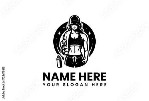 woman, girl, fitness, athletic, strong, healthy, physical exercise, gym, exercise, sport, muscle, body, shape, silhouette, logotype, design, graphic, black, white, cap, towel, water, bottle, sporty, active, lifestyle, power, energy, strength, motivation, inspiration, determination, perseverance, achievement, success, confidence, female, feminine, beauty, fashion, style, apparel, clothing, sport, recreation, wellness, health, well-being, training