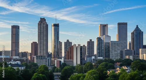 atlanta, skyline, city landscape, georgia, skyscraper, city, urban, architecture, travel, building, downtown, tower, landscape, view, sunset, sky, blue, landmark, office, modern, business, tour tourism, destination, scene, state, america, metropolis, united, state, urbanism, building, district, center, central, structure, horizon, exterior, financial