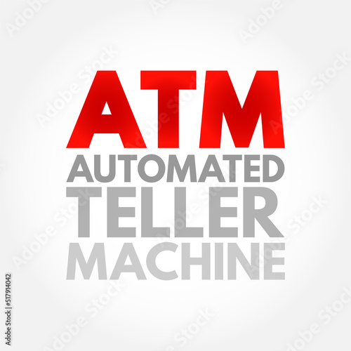 ATM Automated Teller Machine - electronic banking outlets that allow people to complete transactions without going into a bank, acronym text concept background