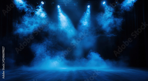 Atmosphere filled with blue light and smoke effects enhances the mood in a dark room, suitable for performances and creative events