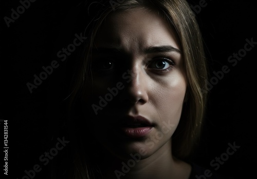 Atmospheric Close-up Portrait of a Pensive Woman in Low Light, Exploring Emotion and Mood through Portrait Photography