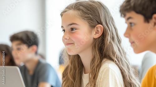 pupil, smile, classroom, teenage, back to school, elementary school, focused, youth, young, education, female, bright, happy, children, listening, learning, school, academic, long hair, study, cognition, student, children, teenage girl, children, girl, freckle, middle school, teacher, attentive, class, lesson