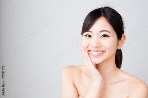 skincare, woman, people, smile, cheek, beauty, cosmetic, health, beauty, bare skin, make-up, care, skin, skin, appealing, young, alone, waist up, japanese, asian, cut-out, background, copy space