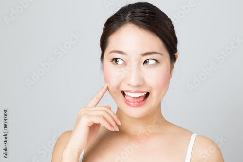 make-up, woman, people, smile, beauty, skincare, bare skin, cosmetic, beauty, alone, portrait, clean, appealing, waist up, white, copy space, cut-out, japanese, chinese, asian