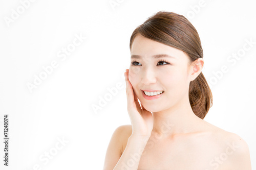 skincare, beauty, woman, people, smile, beauty, cosmetic, health, bare skin, make-up, care, skin, skin, appealing, young, portrait, alone, waist up, japanese, asian, cut-out, background, copy space