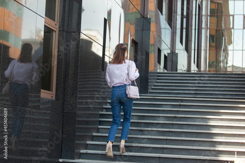 way, ladder, growth, street, men at work, pretty, career, concept, business, young, walking, office, woman, people, work, businesswoman, up, person, step, city, job, girl, attractive, female, modern, confident, staircase, fashion, staircase, success, urban