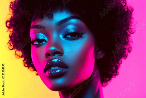 Attractive calm black girl - for ads, media and digital promotion use. Short trim - curly hair. Commercial ad campaign artwork art. Black model in advertising. Black beauty commercial idea.