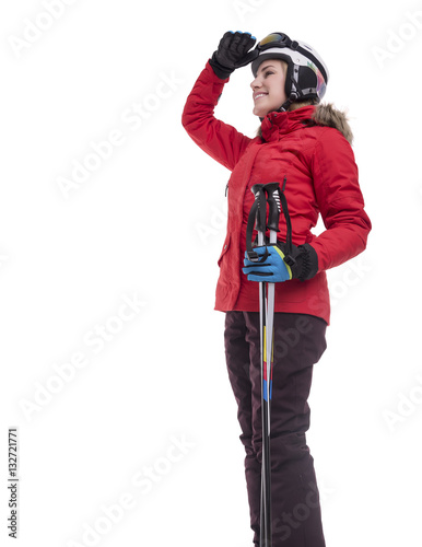 ski, skier, winter, white, snow, isolated, slide, sport, vacation, holiday, tour tourism, travel, background, leisure, season, mountain, extreme, female, person, cold, happy, woman, activity, smiling, girl, beauty, cheerful, recreation, people, lifestyle, young, hat, recreational, skiing, helmet, goggles, ride, blond