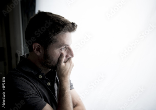 attractive man on window suffering crisis and depression