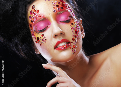 make-up, artistic, matte, closeup, cold, model, attractive, white, mysterious, adult, magic, glamour, luxury, light, caucasian, black, female, fashion, portrait, dark, modern, fantasy, diamond, creative, lady, young, girl, texture, look, face, woman, colours, blue, beauty, rhinestone, hair, skin, elegance, carnival, art, style, beautiful, background, fairy, image, cosmetic, pretty, sexy