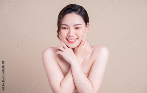 Attractive young Asian woman with fresh skin. Face care, facial treatment, , woman beauty skin isolated on white background. cosmetology, beauty skin and cosmetic concept