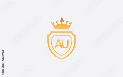 AU Crown and shield symbol icon. royal luxury shield monogram
