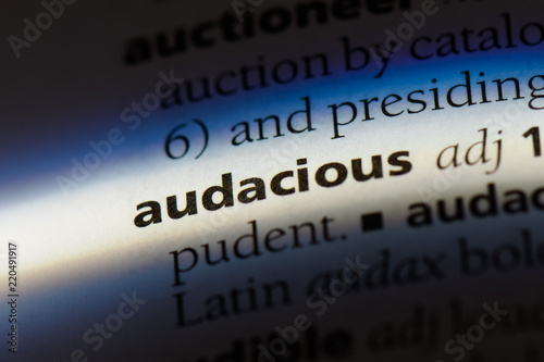audacious, book, closeup, concept, definition, dictionary, english, idea, info, isolated, macro, page, paper, printed, text, word, writing