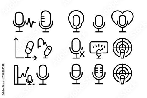 Audio Icon Set. OutlinOutline icon set of headphone battery and power: battery level, charging, power button, low battery warning, charging dock, wireless