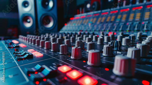 audio mixing console in recording studio