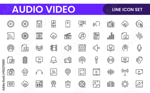 Audio Video Icons Pack. Thin line icons set. Flat icon collection set. Simple outline icons.