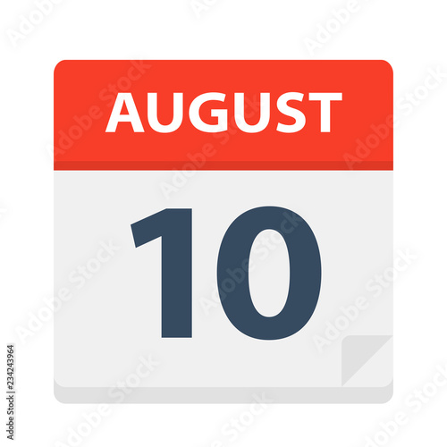august, 10, calendar, icon, vector, illustration, date, day, isolated, rounded, month, page, flat, red, grey, white, background, isolated on white, organiser, plan, schedule, time, today, template, square, leaf, paper, 2018, 2019, 2020, 2021, 2022