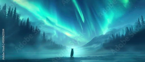 inspiration, joy, landscape, art, snow, wonder, animation, vibrant, aethereal, adventure, mystical, night, starry, style, polar, cold, beauty, character, horizon, colours, atmosphere, charme, animal, fantasy, illumination, light, storytelling, japanese, nature, whimsical, peaceful, emotion, enchantment, cute, glow, dog, magical, dream, creativity, borealis, sky, northern, calmness, aurora, serene, scene, delight