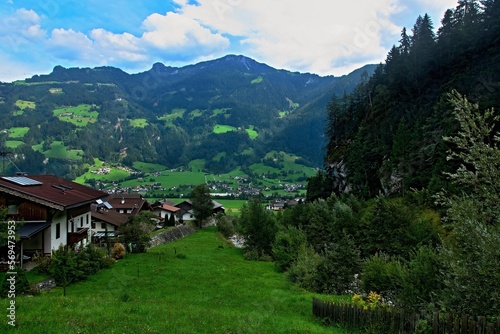 austria, alps, summer, vale, village, cloud, mountain, forest, shrub, tree, grass, trekking, hiking, travel, tour tourism, trip, house, bungalow, hut, cloud, sky, heaven, view, outlook, nature, landscape, meadow, mountain, europa