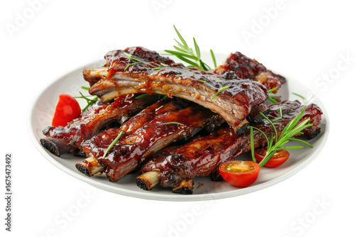 Authentic barbecue ribs on wooden plate – Transparent Background
