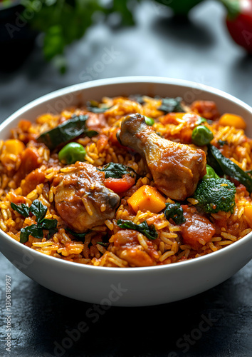 Authentic Liberian Jollof Rice Bowl, A Vibrant and Flavorful Dish with Chicken