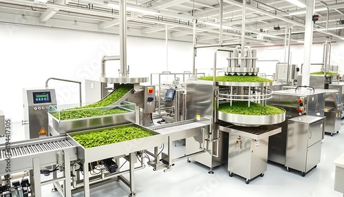 produce, processing, machinery, conveyer, stainless, steel, automated, system, factory, industrial, green, leaf, food, technology, plant, agriculture, harvest, clean, modern, efficient, manufacturing, production, rotating, equipment, industry, commercial, business, high technology, dynamic, fresh, healthy, organic, vegetable, salad, herb, industrial design, innovation, automation, process, solution, market
