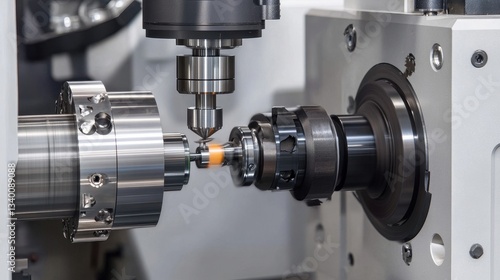 machine, manufacturing, industrial, metal, steel, process, automation, factory, equipment, technology, precision, production, mechanical, workshop, engineering, assembly, automated, cutting, drilling, turning, shaping, fabrication, part, component, work, industrialization, machinery, design, system, structure, fixture, holder, shaft, spindle, clamp, tool, bit, material, device, closeup, angle, view, shiny, detail, circular, center, motion