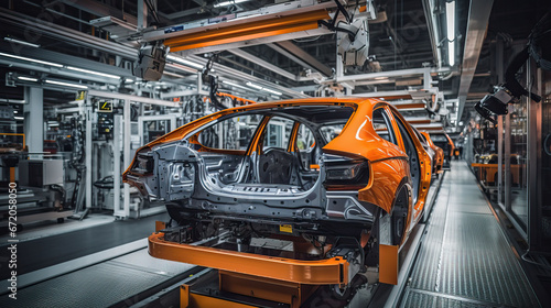 Automotive production line. Modern automobile factory. Automotive industry. Industrial background. Automation industry 4.0 concept