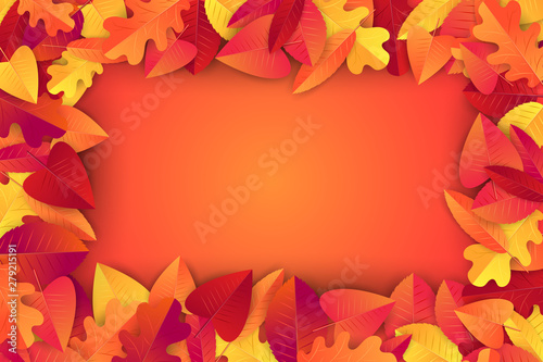 Autumn background with orange and red leaves. Free space for text. Vector illustration.