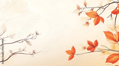 autumn, branch, leaf, orange, white, background, design, art, nature, fall, foliage, floral, abstract, illustration, painting, watercolor, texture, pattern, seasonal, botanical, elegant, delicate, subtile, serene, calm, peaceful, minimalist, simple, clean, soft, light, colours, hue, shade, tone, pastel, cream, beige, vibrant, warm, cool, contrast