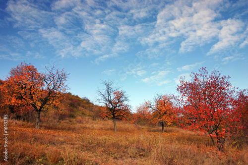 autumn, fall, scenery, romantic, atmosphere, forest, red, heaven, light, cherry tree, nature, peaceful, relaxing, rural, scene, country, sky, travel, tree, grass, countryside, blue