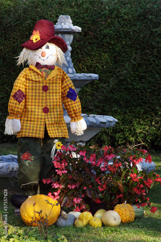 autumn, decoration, fruit, fall, vegetable, pumpkin, doll, puppet, manikin, vertical, green, scarecrow