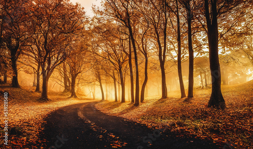 leaf, fall, park, bright, forest, tree, tree, autumn, season, atmosphere, sun, sunlight, sun ray, path, landscape, nature, fantasy