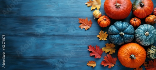 autumn, background, banner, blue, celebration, closeup, colours, colourful, copy, corner, decoration, decorative, fall, festive, frame, gourd, greeting, halloween, harvest, holiday, leaf, october, orange, pumpkin, pumpkin, rustic, seasonal, squash, thanksgiving, top, view, wood, wooden