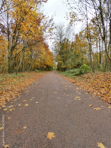 Autumn landscape forest orange colors road