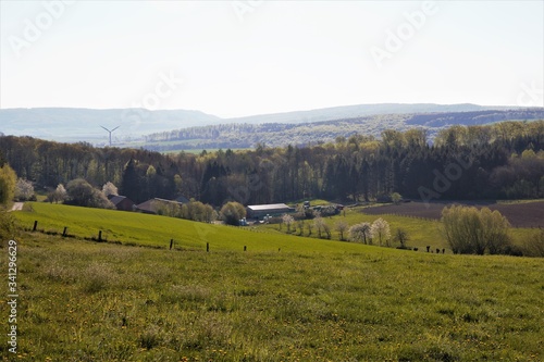 landscape, nature, sky, mountain, grass, field, panorama, green, countryside, hill, meadow, summer, rural, forest, view, tree, country, mountain, tree, hill, cloud, blue, scenery, spring, vale