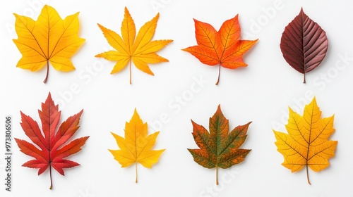 Autumn Leaf Collection Colorful Maple and Tree Leaves Isolated on White Background