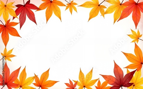 Autumn leaf fall frame. Colorful maple leaves with watercolor background. High quality