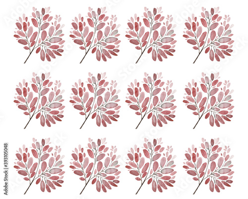 Autumn leaves and branches watercolor illustration background. Hand painted floral elements set. Watercolor botanical illustration.