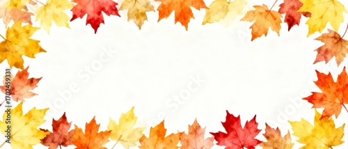 leaf, maple leaf, autumn, fall, yellow leaf, red leaf, orange leaf, watercolor, nature, seasonal, frame, background, art, painting, illustration, colorful leaves, natural pattern