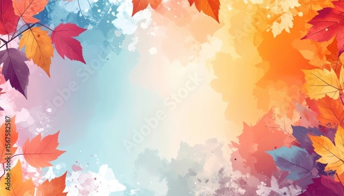 Autumn leaves falling forest landscape digital art vibrant colors aerial view nature serenity