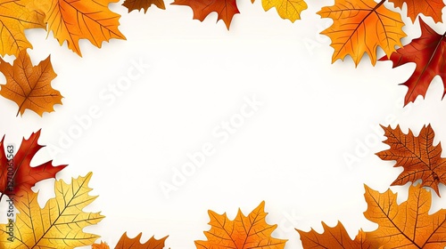 Autumn leaves frame on white background, use as backdrop or graphic element