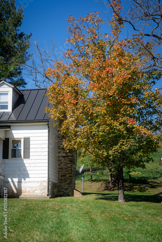 autumn, tree, sky, fall, nature, leaf, yellow, blue, forest, leaf, tree, season, landscape, maple, red, green, foliage, orange, colours, tree branch, bright, park, plant, outdoors, branch