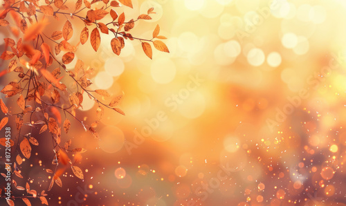 Autumn leaves on a blurred forest background. Abstract autumn background with light bokeh and space for text.