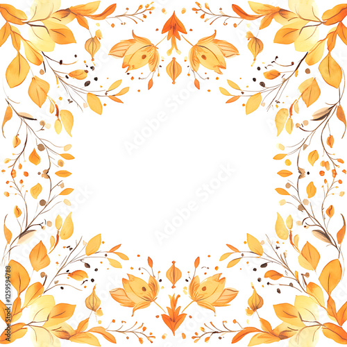 autumn, leaf, fall, orange, yellow, brown, watercolor, frame, border, floral, nature, decorative, design, pattern, symmetry, graphic, illustration, hand, painted, artistic, minimalist, simple, empty, space, copy, background, white, leaf, tree branch, painting, ornamental, abstract, art, print, poster, card, invitation, digital