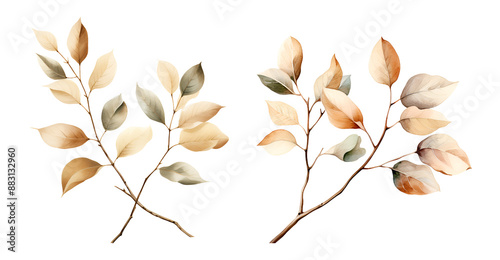 Autumn leaves, watercolor clipart illustration with isolated background.