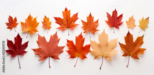 maple, leaf, autumn, fall, foliage, red, orange, yellow, brown, colours, nature, seasonal, collection, arrangement, white, background, photo, still, life, overhead, top, view, vibrant, colours, shades, tone, spectrum, palette, harvest, october, november, september, deciduous, plant, flora, botanical, beauty, image